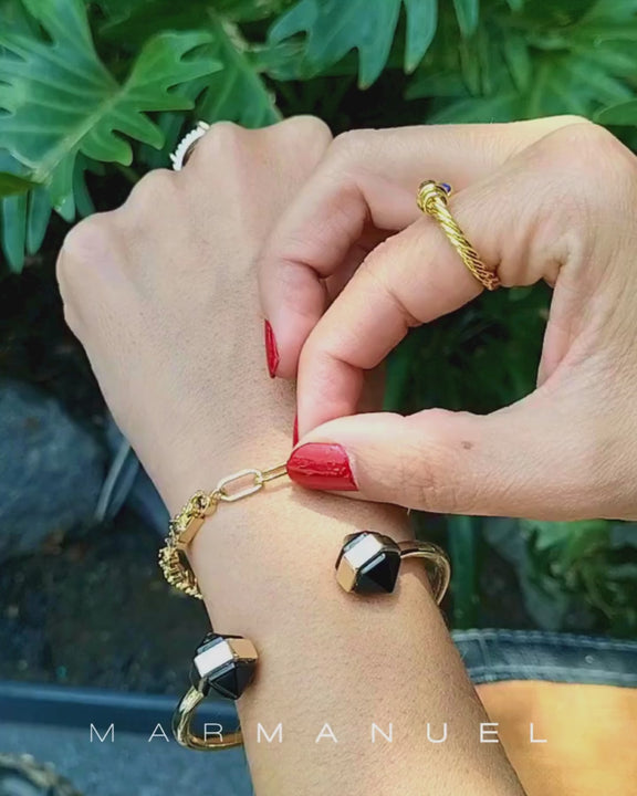 Pulsera RAW con zirconias y cadena terminada en oro de 14k